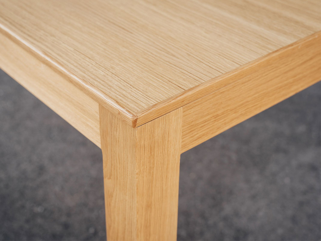 De líneas limpias y rectilíneas esta mesa está realizada en roble de la mejor calidad y rematada en canteado macizo perimetral, creando una estructura firme y elegante.